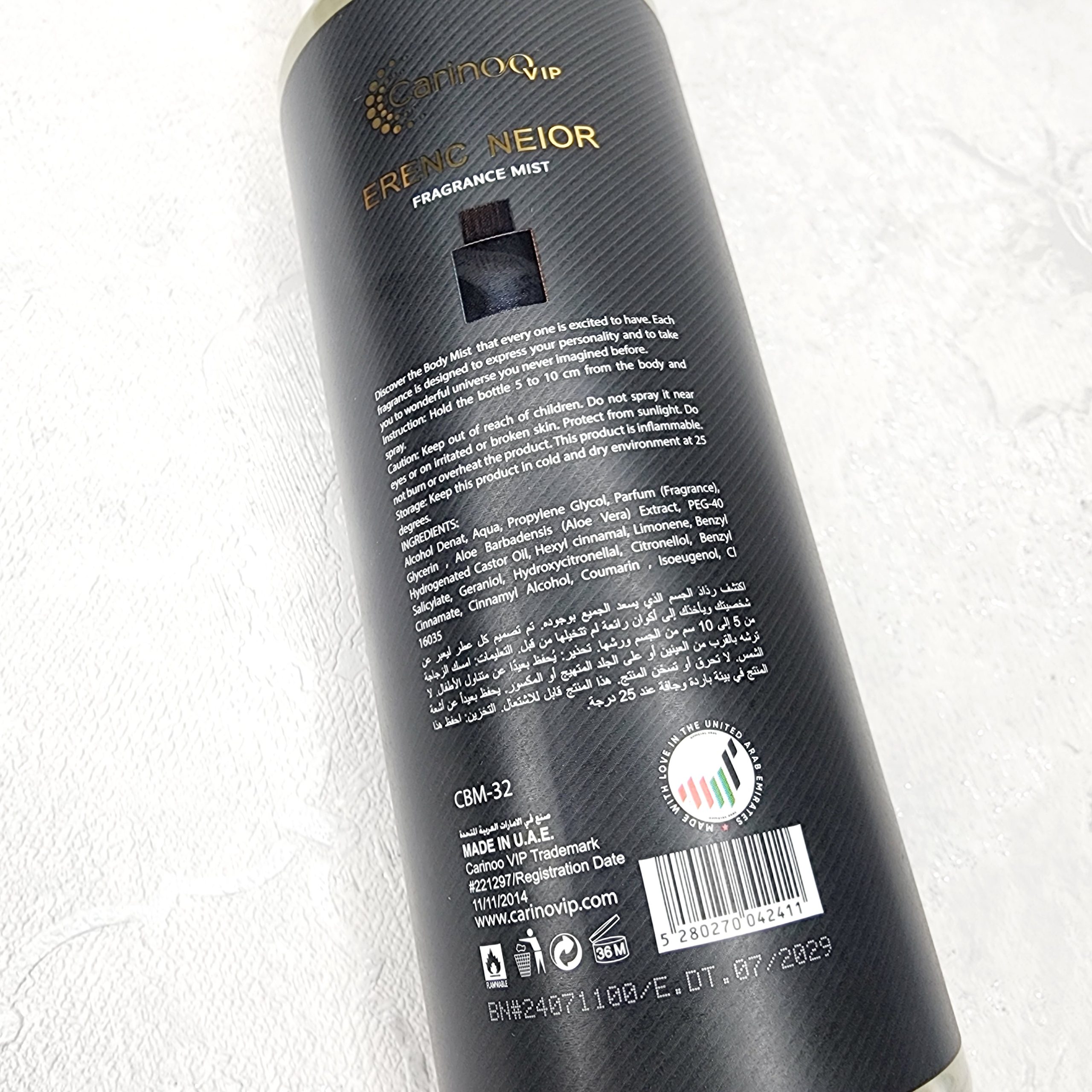 بادی میست “کارینو” مدل “لالیک” یک اسپری خوشبوکننده بدن است که با الهام از عطر معروف “Encre Noire” از برند لوکس “لالیک” (Lalique) تولید شده است. این بادی میست برای افرادی طراحی شده که به دنبال یک رایحهی عمیق، چوبی و ماندگار هستند. رایحه این محصول خاص و منحصر به فرد، برای استفاده روزانه یا موقعیتهای خاص مناسب است.