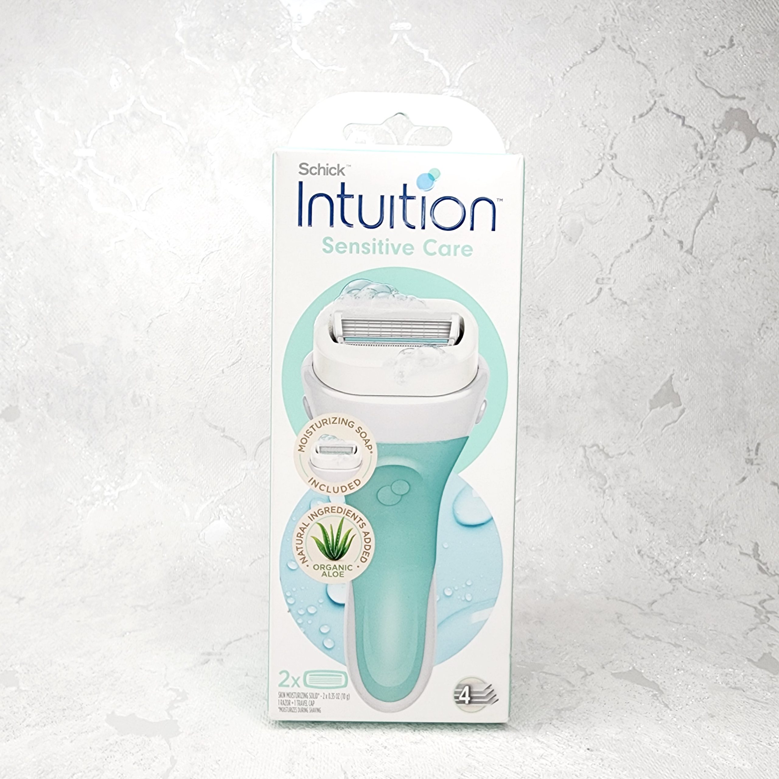 تیغ اصلاح زنانه Schick Intuition برای پوست حساس – ۱ تیغ و ۲ تیغ یدک Intuition با آلوئه ورا
