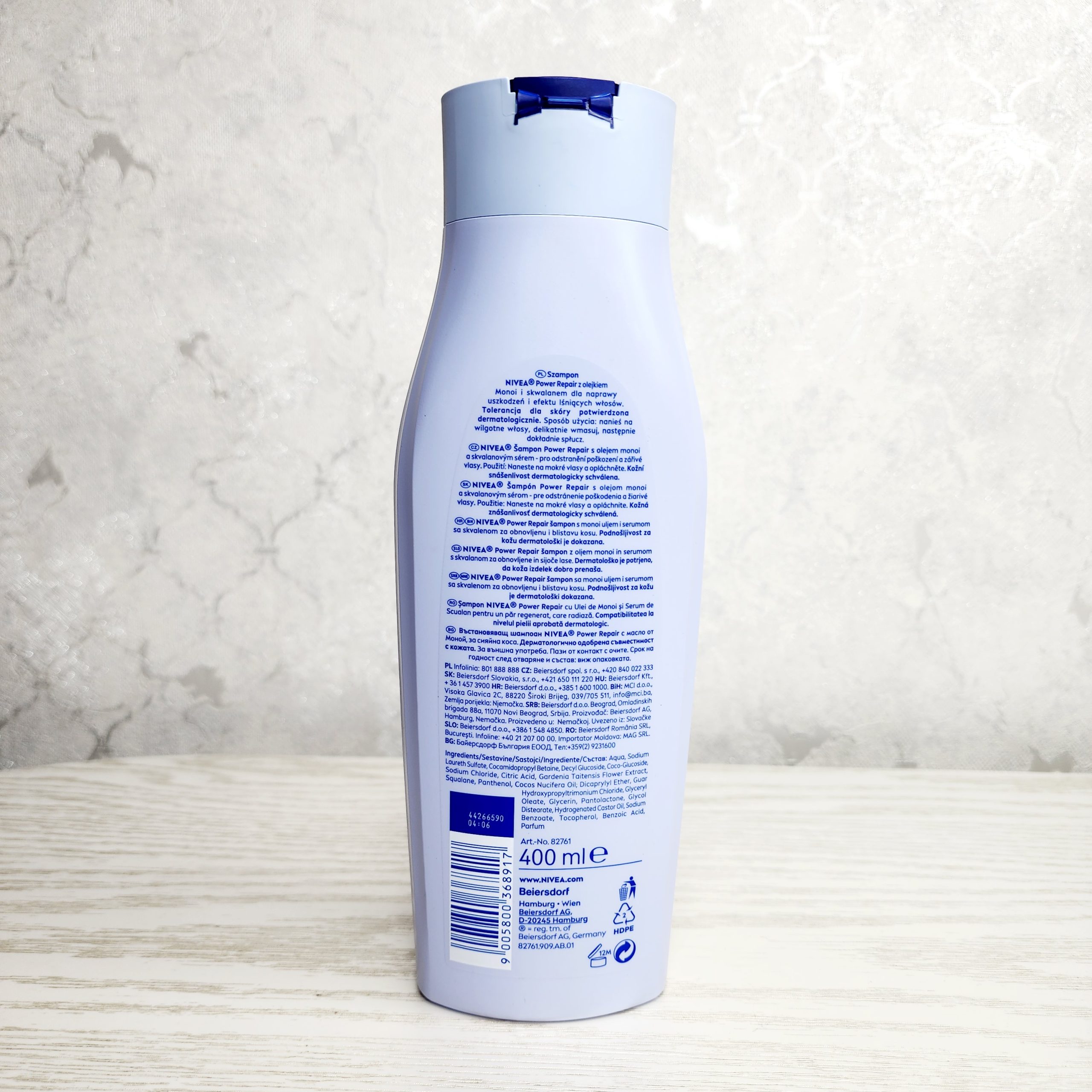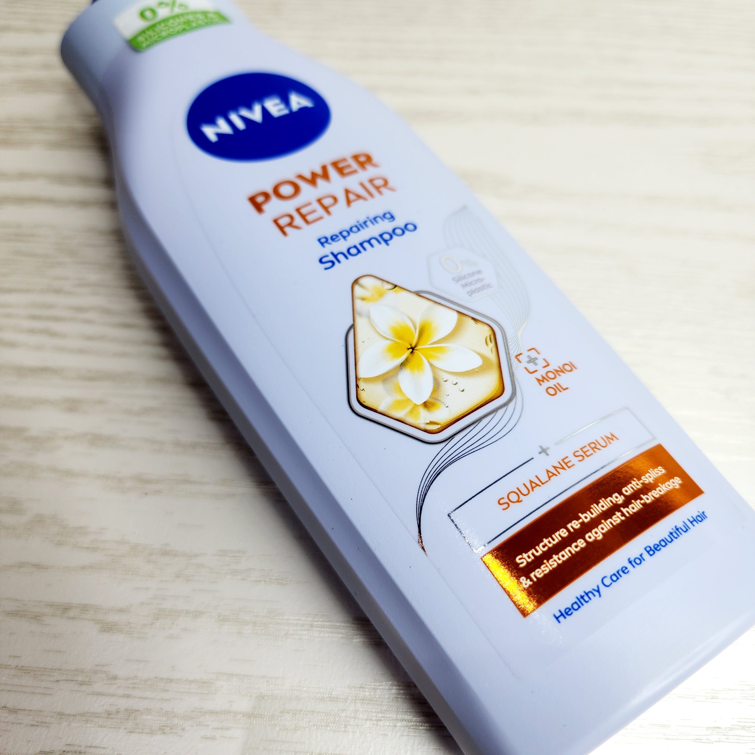شامپو پاور نیوا ترمیم کننده ساختار مو، مقاومت و ضد شکستگی مو حاوی سرم اسکوالان بسیار موثر و روغن مونوی طبیعی است. شامپو نیوا ترمیم کننده NIVEA Power Repair موهای خشک را مرطوب می کند، از شکاف انتهایی جلوگیری می کند و از ترمیم موهای سالم پشتیبانی می کند.