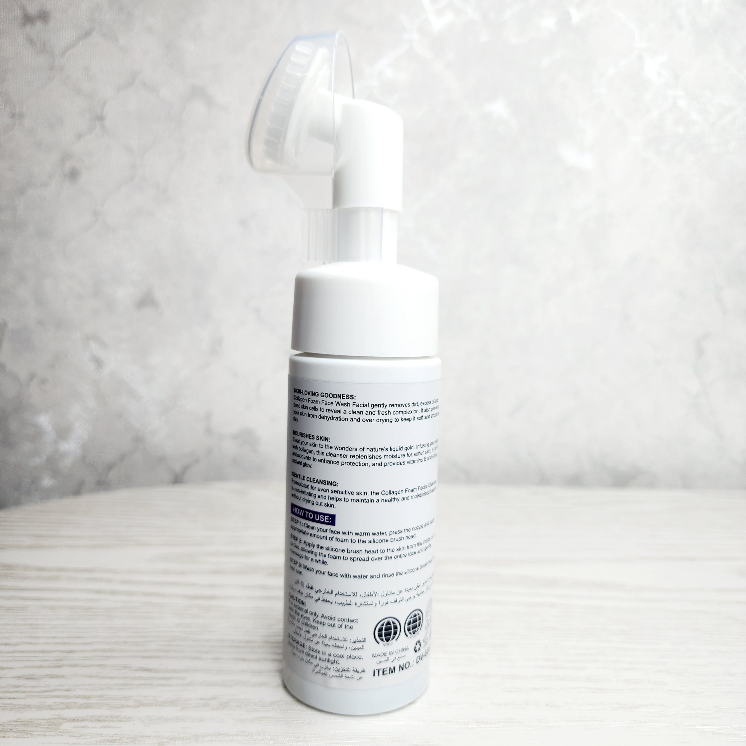 ② مقدار کمی از فوم شستشوی صورت را فشار دهید تا از براش سر محصول بیرون بزند.