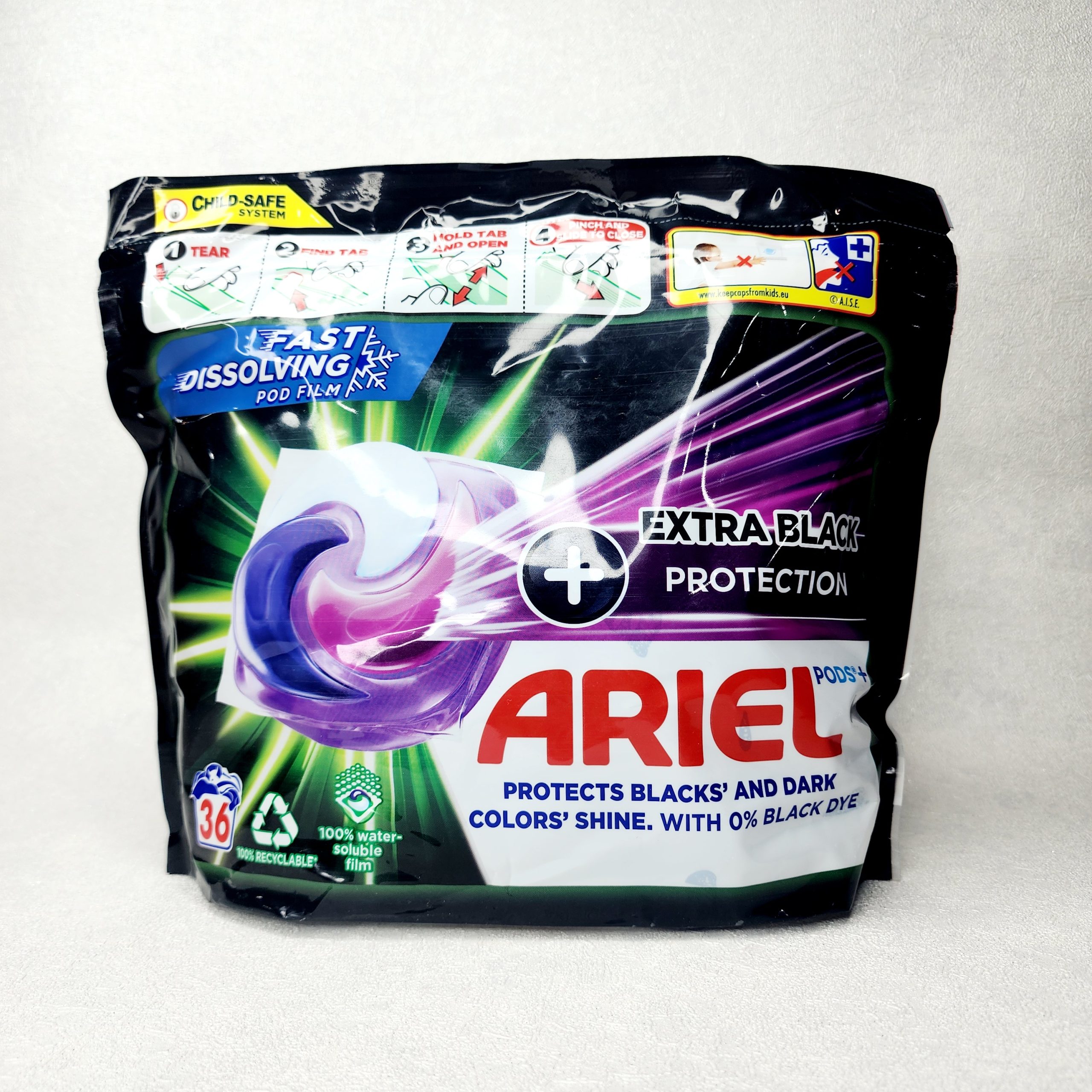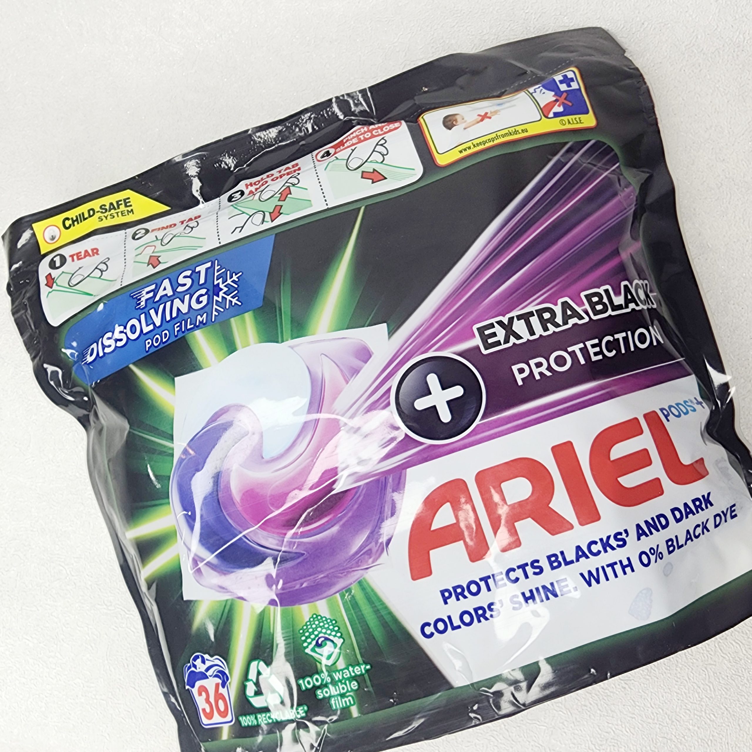اگر لباس‌های مشکی و تیره بخش مهمی از استایل شما هستند، Ariel Pods+ Extra Black انتخابی هوشمندانه برای حفظ عمق رنگ، کیفیت پارچه و درخشندگی ماندگار آن‌هاست. این کپسول با فرمول پیشرفته اروپایی، شستشویی قدرتمند و در عین حال ملایم را فراهم می‌کند؛ بدون آن‌که به رنگ یا بافت لباس آسیب بزند.