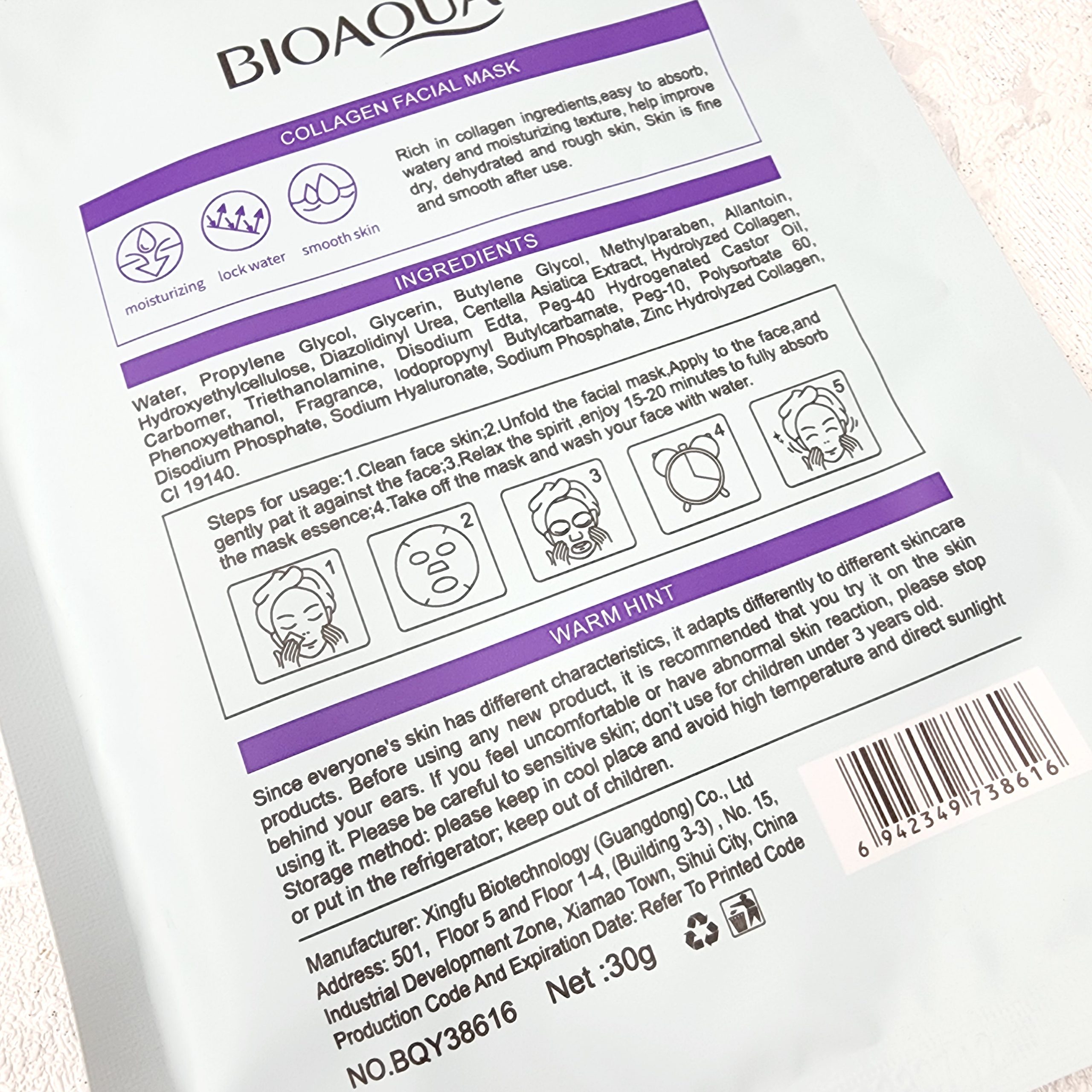 روش استفاده از ماسک ورقه ای صورت روشن کننده کلاژن بیوآکوا BIOAQUA