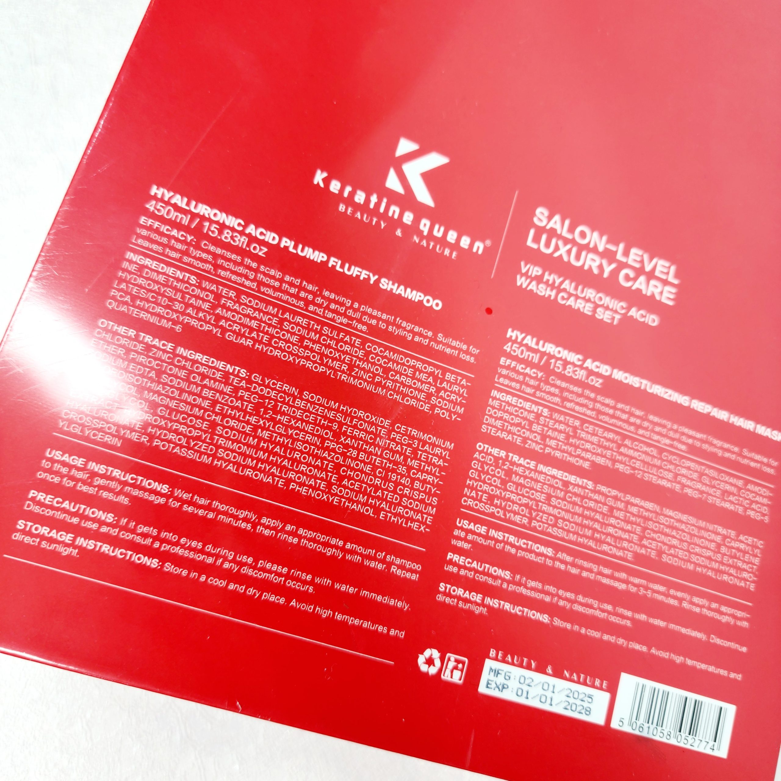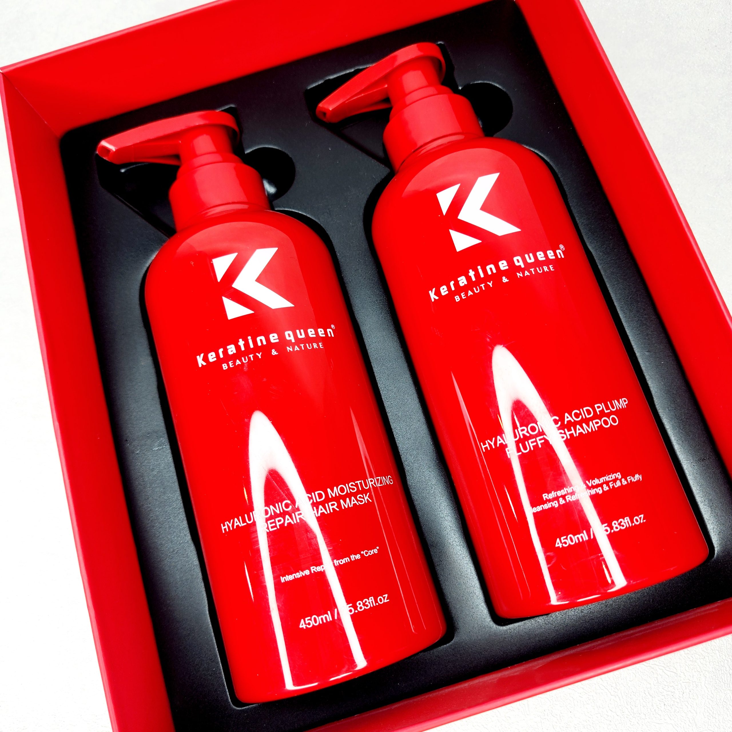 استفاده از شامپو و ماسک موی مخصوص موهای کراتینشده یکی از مهمترین مراحل برای حفظ ماندگاری و درخشندگی کراتین است. این محصولات با فرمولاسیون بدون سولفات و ترکیبات ملایم، از ساختار مو محافظت کرده و مانع از کاهش مواد کراتین در تار مو میشوند. به کمک این شامپو و ماسک، موها نرمتر، صافتر و سالمتر باقی میمانند و تأثیر کراتین برای مدت طولانیتری حفظ خواهد شد. شامپو قرمز کراتین کویین به گونه اس ساخته شده است که در مواد سازنده آن از سولفات و نمک و پارابن استفاده نشده است. بنابراین برای مو های کراتین شده و رنگ شده و پروتئین شده کاملا مناسب است . همچنین در این پک ، ماسک مو قرمز کراتین کویین است که کراتین و پروتئین موجود در موهای شما را تثبیت می کند و با ابرسانی از موخوره و وز شدن مو جلوگیری می کند .
